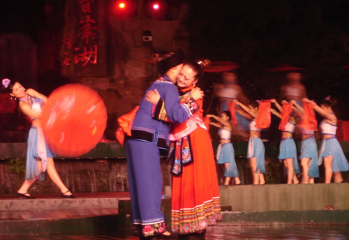 姑娘出嫁,為女人一生中最大的喜事,本應充滿幸福、歡樂的氣氛。然而,舊時湘西、湘南、鄂西、川西(成都等地)、黔東(銅仁、凱里一帶)諸地,卻流行著一種與之完全相反情調(diào)的古老婚俗——“哭嫁”。也就是在姑娘“出閣”之前,不但新娘本人哭得很傷心,像淚人一般;而且,新娘的母親、姐妹以及姑媽、姨媽、舅媽及其他交往較多的女友,都要陪著新娘哭。湘西土家族哭嫁的風俗尤為普遍、濃厚,不但哭嫁的時間較長(少則十來天,多達個把月),而且哭嫁歌也保存得古樸、完整。 姑娘出嫁為什么要哭?哪有那么多的東西可哭?這是一種蘊含甚為豐厚的人生禮俗,也是一種饒有興趣的婚俗事象。 俗話悅:“人不傷心不落淚!惫媚锍黾拗砸蓿且驗樵谂f式婚姻制度下,女孩(尤其是勞苦大眾家庭的女孩)總是作為犧牲品“拋”(賣)給夫家的,她們的身心受到極大傷害。因此,湘西等地的女孩在出嫁之前要哭泣,要呼號,哭嫁歌就是感情發(fā)泄的最好表現(xiàn)方式。 哭嫁的源起 哭嫁的風俗,不知道起源于什么時候。戰(zhàn)國時期,趙國的公主嫁到燕國去作王后,她的母親趙太后在臨別時"持其踵,為之泣,祝曰,必勿使返。"大約就是后來長盛不衰的哭嫁風俗的濫觴了。 這種風俗,直至清末還盛行于四川農(nóng)村中,隨地區(qū)變化而大同小異。解放前,聽老人們說,早些時候,沒有嫁而不哭的人家。如果出現(xiàn)嫁而不哭的姑娘,也會被鄰里看作沒有教養(yǎng)的人,傳為笑柄;相傳有出嫁姑娘不哭而遭母親責打的事,這位母親當然算得上是入流導演了。 舊時宣講故事中,有花轎臨門,父親強令哭《迎風罵媒歌》的情節(jié),可知哭嫁是有歌詞的,帶有表演性質(zhì),原是用來渲染氣氛,以悲襯喜;不過,因為婚姻是包辦的,真哭真罵的也不會少。 抗日戰(zhàn)爭后期,風氣較開,哭嫁之風已不盛行,而老人們卻還在津津樂道,哭的方式是,從婚期前一個月的首日起,入黃昏,姑娘訴哭約一個小時,其聲嗚嗚。十天以后,她的母親加入"陪哭";又十天以后,她的祖母加入陪哭。這家沒有諸姑姊妹,人們說,如果有的話,也應當加入陪哭行列的。 哭嫁在川西叫"坐堂"。清代吉道人《味蔗軒隨筆·坐堂詞》云:"婚姻之禮,各省風俗不同。然酌禮準情,各省亦大同小異。凡男家娶婦先賦之詩,謂之'催妝';女家親串頌女之詞,謂之'坐堂'。坐堂者,女當喜期將近之先數(shù)夕,其諸姑伯姊,置酒為女祖餞,各述吉祥之詞,以為頌美,女則申己之意以答。女左右更有少女,則隨而嫻習者也。其詞要多鄙俚,然有音韻凄清,風格遒勁,如古歌古謠者。羅江明府蔡,微服巡查鄉(xiāng)里,一日行至某處,值有女子歸,諸娣姒咸以諛詞頌女,女申意以答。忽風吹句入耳,詞曰:'鳳凰落在桌子上,哪個女兒肯離娘'。一字一轉(zhuǎn),音韻凄其,誰謂天籟之鳴,不在愚夫愚婦耶!"云云。吉道人姓周名際唐,成都人。吉道人記得明明白白,可惜他只記了一句哭嫁詞,難窺全貌。好在舊時坊間叢刻中有《訓女哭嫁》一種,可見一斑。這本小書的目錄有《閨聲哭》、《娘訓女》、《嫂哭妹》、《哭爹媽》、《哭哥嫂》、《花轎到屋哭》、《哭叔爺》、《哭兄弟》、《哭外公外婆》、《哭舅爺》、《拜香火哭》等等,編次有點凌亂,似乎隨手所記,未經(jīng)文人之手。遙想《詩》十五國風未刪之時,大約也不過如此吧! 閨聲哭 娘聽后園鳥雀驚,要聽房中女兒聲。 我娘當門苦葛藤,手攀苦葛訴苦情。 我娘苦情苦過了,女兒苦情才起根。 ............ 桔子開花葉子青,陽雀開聲我開聲。 新打銅盆才裝水,新打剪刀兩面青。 娘不開口我開口,娘不開聲我開聲。 當門一根木蓮樹,目連樹上掛卷經(jīng)。 一本經(jīng)書背完了,未見我娘來開聲。 虧了我娘睡得穩(wěn),爹媽眼淚貴如金。 哭爹媽 月亮彎彎照華堂,女兒開言叫爹娘。 父母養(yǎng)兒空指望,如似南柯夢一場。 一尺五寸把兒養(yǎng),移干就濕苦非常。 ............ 勞心費力成虛恍,枉自爹娘苦一場。 哭兄弟 黑漆茶盤烏木頭,姐姐離娘弟不留。 留到姐姐吃你飯,留到姐姐穿你衣。 兄弟當家掙家忙,嫁了姐姐買地方。 上頭買齊潼川府,下頭買齊遂寧鄉(xiāng)。 ............ 這個本子所記是川北的歌詞,以前所見的是川南,吉道人所記的是川西,川東,大約也不會大異的。遺憾的是,該書所記哭嫁詞雖有"只怨媒人莫良心"等語,卻沒有列出"罵媒專目,大約是怕媒人太難堪了吧! 其實,罵媒是哭嫁中必不可少的節(jié)目,也是最具反抗色彩的哭嫁歌詞。舊社會,婦女無婚姻自由可言,由于"三從四德"的束縛,平時對于自己的終身大事幾乎不能置一詞,全由媒人和父母擺布;因此,這登花轎之前的"罵媒",便是難得的發(fā)泄機會。這早已反映在戲曲和民間說唱等藝術之中。 以前,川劇《柳蔭記》有《英臺罵媒》一折,英臺罵媒人,言詞激烈,聲色俱厲,充分表現(xiàn)了祝英臺剛烈的性格和反封建精神。她罵道:"提媒婆,更恨她,胡言亂語嘴喳喳......唯愿你,房屋遭火化,田園水推沙。"但這場戲現(xiàn)在卻被刪掉了,五六十年代還有的,全國第一屆戲曲會演的川劇《柳蔭記》也有這一折,是陳書舫演的祝英臺,得了一等獎,F(xiàn)在城里人大約以為媒婆不必罵了,但偏遠地區(qū),媒婆似乎還在肆虐。不過,據(jù)說,媒人從來不怕你罵,反倒怕你不罵;你不罵,他的"霉(媒)氣"反而脫不了。這也是風俗民情中的一種幽默吧! 在三峽民間,特別是在巴人(土家族)的生