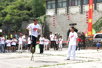 張家界高花燈亦稱高皇燈,是流行于永定沅古坪一帶富有民族特色的舞蹈。表演時,12人至24人不等。配有鑼、鈸、嗩吶、鼓等樂器。每人手中拿一盞紙扎燈籠,內(nèi)點蠟燭兩根,頂扎一木偶像,用五色紙剪成戲文故事如“八仙” 、“瓦崗寨”,“梁山英雄 ”之類。高花燈表演有一套程式,要求東起西落,進(jìn)一個“半邊月”,出一個“月團(tuán)圓”,舞個“太極圖”。亦可進(jìn)民房表演,叫“愿燈”,多為祝福、還愿或為某家喜事湊趣。打吆喝、打口哨則只能到戶外表演,叫“眾燈”,是讓大家看的。其形式又分民燈、戰(zhàn)燈。前者表演 古代先民的遷徙、繁衍、勞動、生活;后者表演打仗破陣。隊形變化有“織籬笆”、滾柱頭”、“十八斗”、“螺螄轉(zhuǎn)頂”、“八卦陣”、“過天星”、“一字長蛇”等二十余種。如破“象棋盤陣”,主人插三十二根香,擺成棋盤陣,表演時,主人舉紅傘,玩燈者舉黑傘,從河道進(jìn),將眾“子”一一吃掉(即踩香),這是斗智的競賽。只見燈火如流星般穿插舞蹈 ,旁邊配以龍燈互舞(配龍玩燈,是高花燈的主要特點之一),那激起的鑼鼓聲、吆喝聲、口哨聲,掀起有節(jié)奏的聲浪,熱烈而歡快。 張家界高花燈發(fā)祥于張家界市永定區(qū)沅古坪鎮(zhèn)等地區(qū),與沅古坪地區(qū)接壤的沅陵、桃源、慈利等周邊區(qū)縣也有少量玩高花燈的習(xí)慣。 高花燈的燈代表著光明幸福,12個燈表示12個月,月月平安無事。每年春節(jié),每個村寨都要操練一班高花燈,辭舊迎新。制作時,藝人用竹篾和紙扎糊成12或24個燈籠,在燈籠下加上一個長柄燈托,并在燈籠上扎上五顏六色的“故事”,如“八仙”、“耿氏送子”等。夜晚,在燈籠里點上木油臘燭,一人舉一個燈籠,邊舞邊組成多種隊形。一眼望去,流光閃爍,尤如銀河戲舞。 張家界高花燈不但為本鄉(xiāng)本土的觀眾所喜愛,而且受到海內(nèi)外朋友及國際友人的高度贊賞。因為它是中國古老的民間舞蹈代表,它以自成體系的記譜方法,延繼著中國舞蹈的血脈,以其悠久的舞蹈歷史和多元文化特征,被舞蹈界認(rèn)為是“中國舞蹈歷史上的活化石”,極具學(xué)術(shù)研究價值和很高的審美價值。已列入全省第一批非物質(zhì)文化遺產(chǎn)保護(hù)名錄。 高花燈相傳起源于東漢章帝初年,時“ 中蠻”覃兒健在澧水中下游舉義反漢,與漢軍“戰(zhàn)于洪下”(相傳為今大庸紅土坪,待考),洪下“蠻人”用火 把跳舞為義軍吶喊助戰(zhàn),終因漢軍勢眾,覃兒健與義軍全部戰(zhàn)死(至今留下懸鼓坪、御甲埡、扎營山、烽火臺等古戰(zhàn)場遺跡)。以后,當(dāng)?shù)匦U人每年都必在過 后年(從正月初一至元宵節(jié))打火把集會跳舞, 栽“ 陽樁”(土話栽跟頭),表示對“洪下之戰(zhàn)”的紀(jì)念 。久而久之,火把進(jìn)化成燈籠和扎人物事故,表演也 有一定規(guī)矩。至今,這種舞蹈藝術(shù)還保留著古老、原始、粗獷、豪放、悲壯的特色。 |