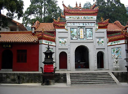 在岳麓山半腰,系晉初古寺,是佛教人湘最早的一所大寺。明神宗時(shí) 更名為萬(wàn)壽寺,民國(guó)初年復(fù)名,古麓山專。唐代大詩(shī)人杜甫曾用“寺門高開 洞庭野,殿腳插入赤沙湖”的詩(shī)句稱頌殿字宏大。大雄寶殿等主要建筑,于 1944年被炸毀,僅存山門和觀音閣,現(xiàn)已修整一新.山門上有“古麓出寺” 的橫額,兩旁為“漢魏最初名勝,湖湘第一道場(chǎng)"對(duì)聯(lián),門外古楓參天,濃 蔭覆蓋,門內(nèi)園圃百花爭(zhēng)艷。觀音閣為磚木結(jié)構(gòu),1955年曾加以修葺,1980 年再次修整恢復(fù)原貌,并在廳堂神龕中置觀音像。閻內(nèi)常舉辦小型書畫展 覽。觀音閣前有兩株羅漢松,左邊一株是六朝遺跡,稱“六朝松",樹 齡在1700年以上, 是岳麓山植物界的"元老", 老干新枝,紛繁翁 郁,彌足珍貴;右邊一株于清代被巨風(fēng)拔去并被清代人補(bǔ)植。兩棵古松 并峙于閣前,游人樹下經(jīng)過,若入關(guān)隘,故有“關(guān)松"之稱。