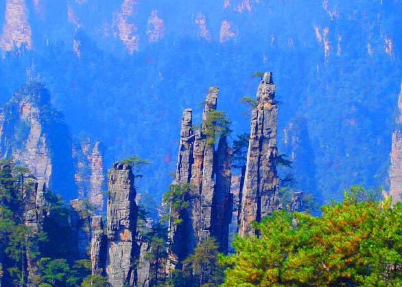 上 午: 導(dǎo)游或者司機(jī)在張家界機(jī)場(chǎng)或車站或者酒店接團(tuán)。旅游車前往中國(guó)第一個(gè)國(guó)家級(jí)森林公園——【張家界國(guó)家森林公園】(約40分鐘車程,門票245元+5元景區(qū)保險(xiǎn)已含)。游覽大氧吧廣場(chǎng)(每立方厘米空氣中含8-10萬個(gè)負(fù)氧離子),登海拔1200米、張家界最大的凌空觀景臺(tái)——【黃石寨景區(qū)】(黃石寨可以乘索道上下,也可以徒步上下。如果選擇乘坐索道,單程65元/人、雙程118元/人自行購(gòu)買)。黃石寨山頂千山萬壑盡收眼底,沿著山頂環(huán)寨游道行走,可欣賞到許多絕美的自然風(fēng)光,沿途有六奇閣、摘星臺(tái)、雙門迎賓、五指峰、霧海金龜、天然壁畫、黃石松、回音壁、九重壁等景點(diǎn);