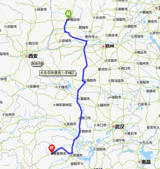 臨汾去張家界自駕車(chē)自助游線路圖全程高速):