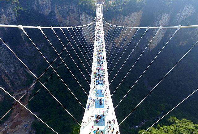 張家界大峽谷玻璃橋橋面由99塊全透明玻璃鋪設(shè),橋面總長(zhǎng)430米、寬6米,距谷底相對(duì)高度約300米,游客走在橋上就可以清楚地看到腳下的懸崖峭壁,好似行在空中,非常刺激,被美國(guó)有線電視新聞網(wǎng)列入世界上11座最壯觀的橋之一。目前,張家界大峽谷玻璃橋已經(jīng)成為世界旅游的一張響亮名片。